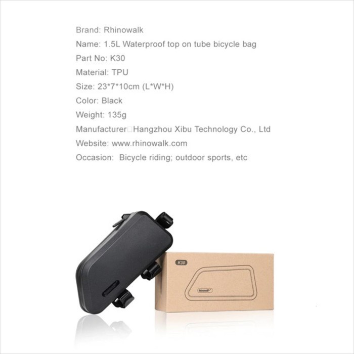 Rhinowalk K30 Bike Top Tube Frame Bag 1.5L - Tas Sepeda MTB BLACK