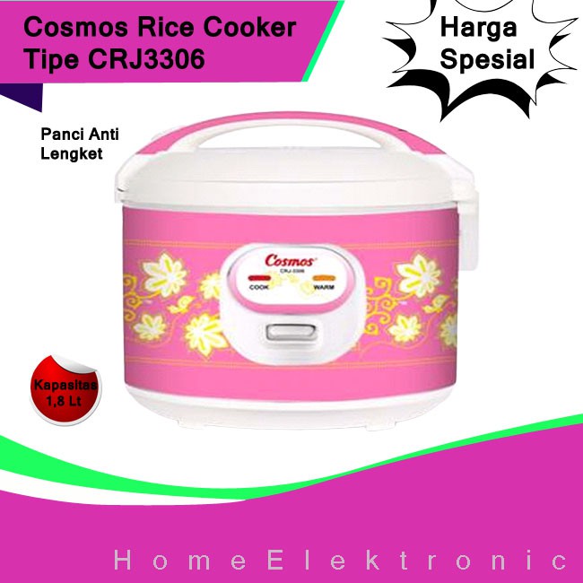 Rice Cooker COSMOS Magic Com 1.8 Liter CRJ3306 / CRJ-3306 / CRJ 3306 - Pink FREE BUBLE WRAP