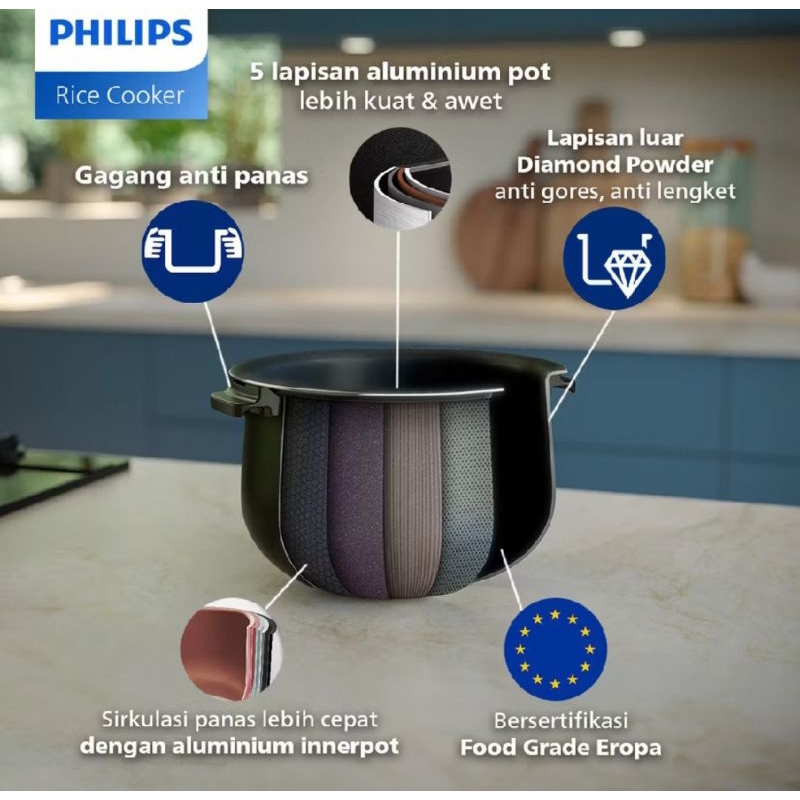 Rice Cooker Philips HD3210/32 Hijau Magic Com HD 3210 Penanak Nasi HD3210 Magicom 1,8L 1,8 L 1.8 Ltr