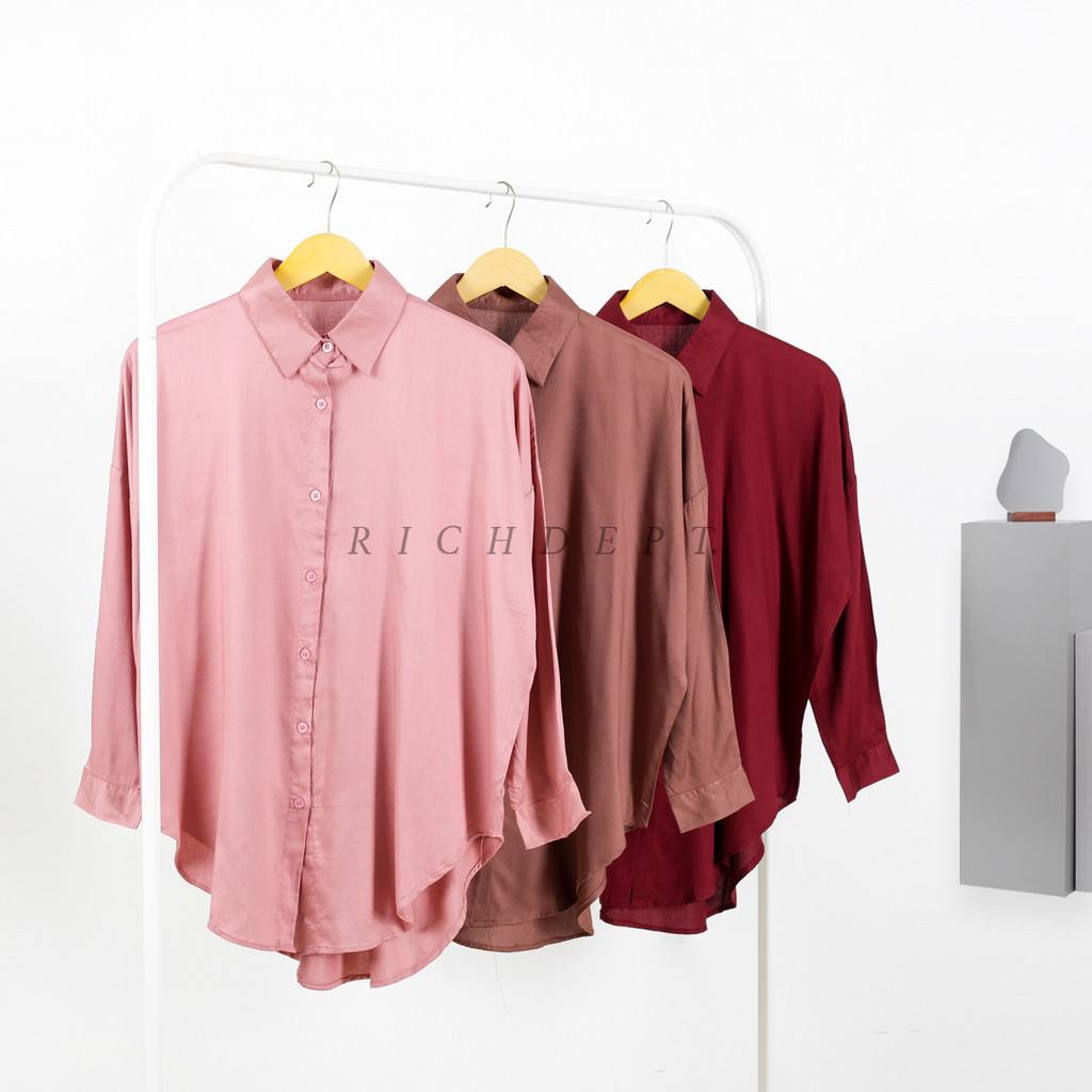 RICHDEPT Kanaya Shirt | Baju Wanita Muslim Tangan Panjang Outfit Hijab | Kemeja Rayon Twill