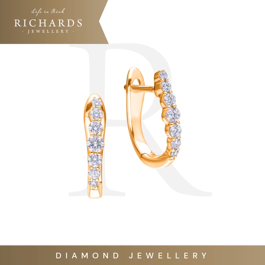 Richards Jewellery – Anting Berlian - Rose Gold Hoop - 268967
