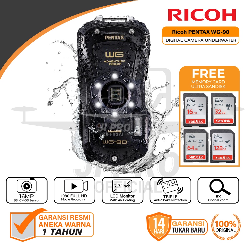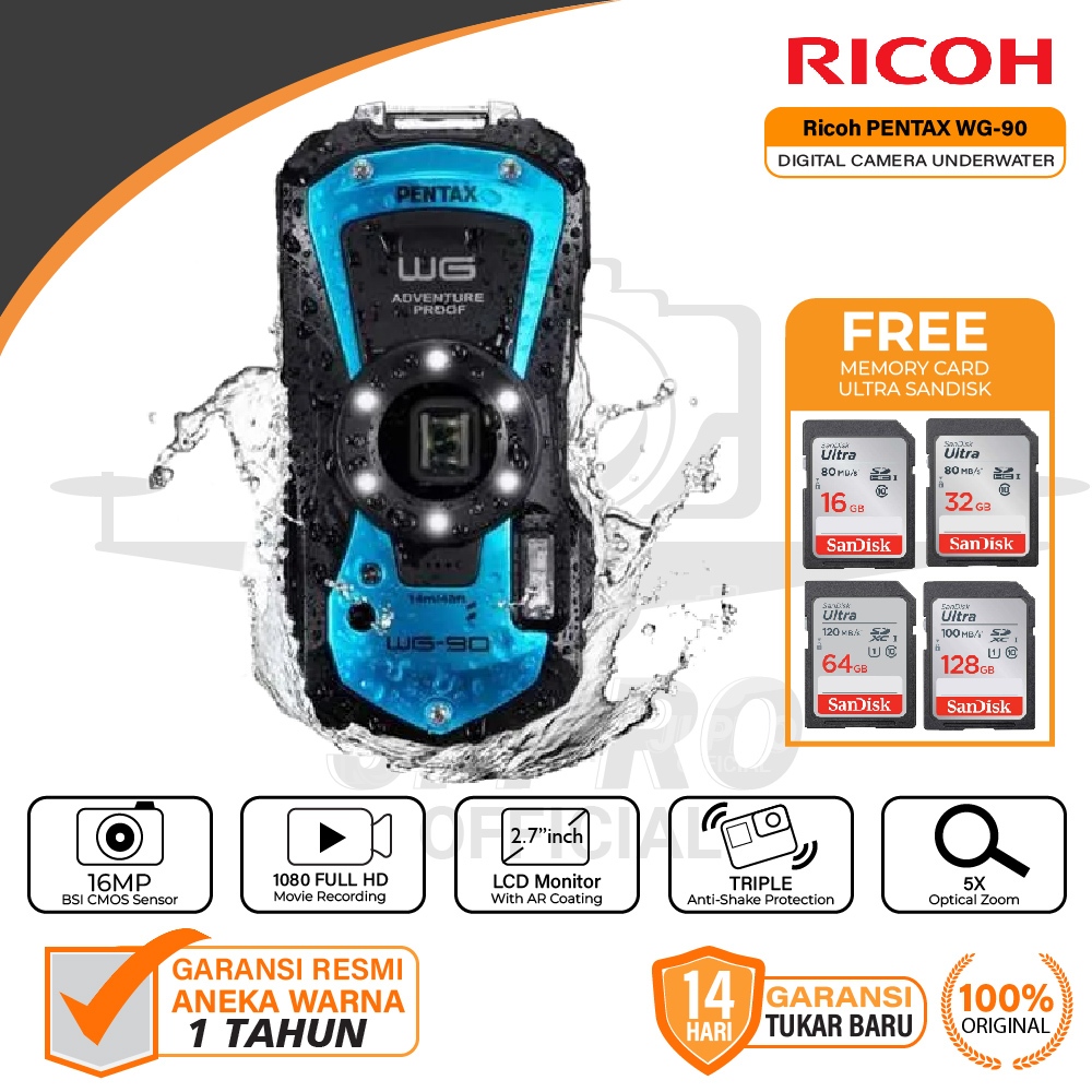 Ricoh PENTAX WG-90 Digital Camera Underwater Waterproof WG90 / WG 90 Garansi Resmi