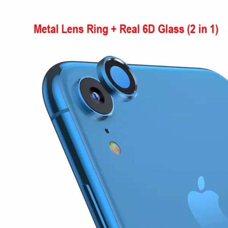 Ring Camera Metal iPhone XR Bumper Kamera + Lensa Temper Glass Screen Guard Protector Anti Gores Camera Pelindung Ring kamera