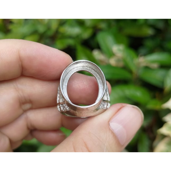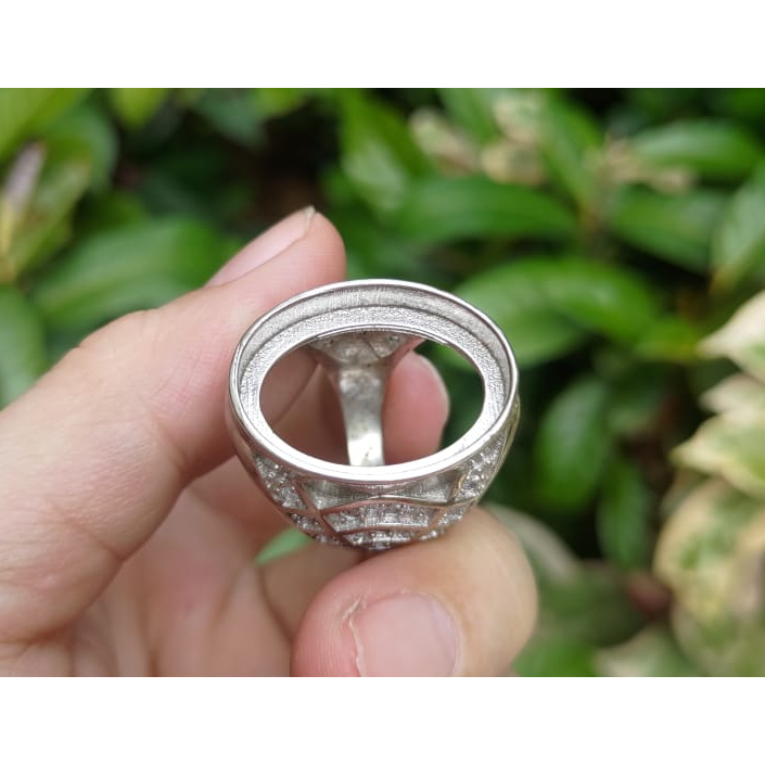 Ring Cincin Emban Alloy Chrome Perak ALL004 Kokoh Mewah Kombinasi Zircon Indah