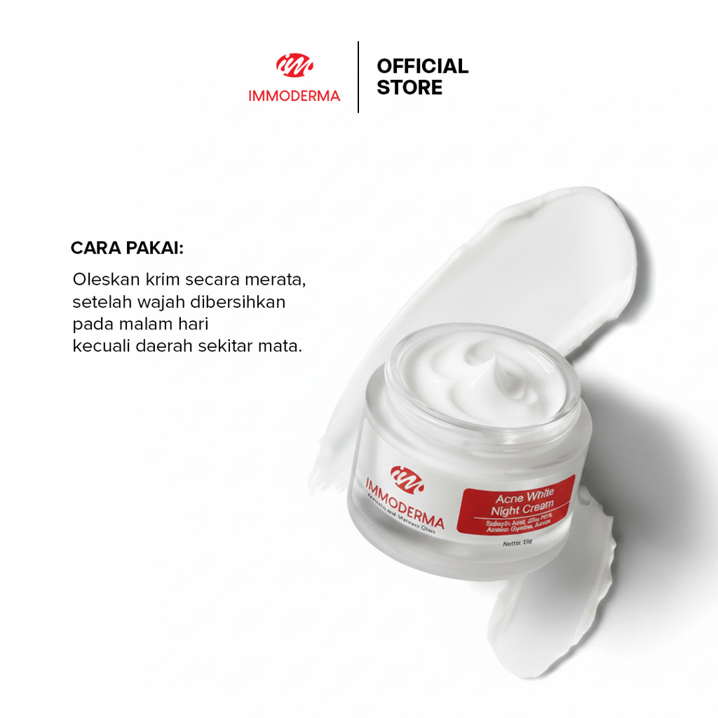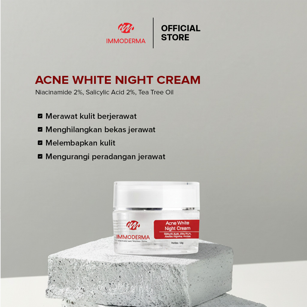 IMMODERMA Acne White Night Cream | Krim Malam Perawatan Wajah Berjerawat Bruntusan dan Berminyak
