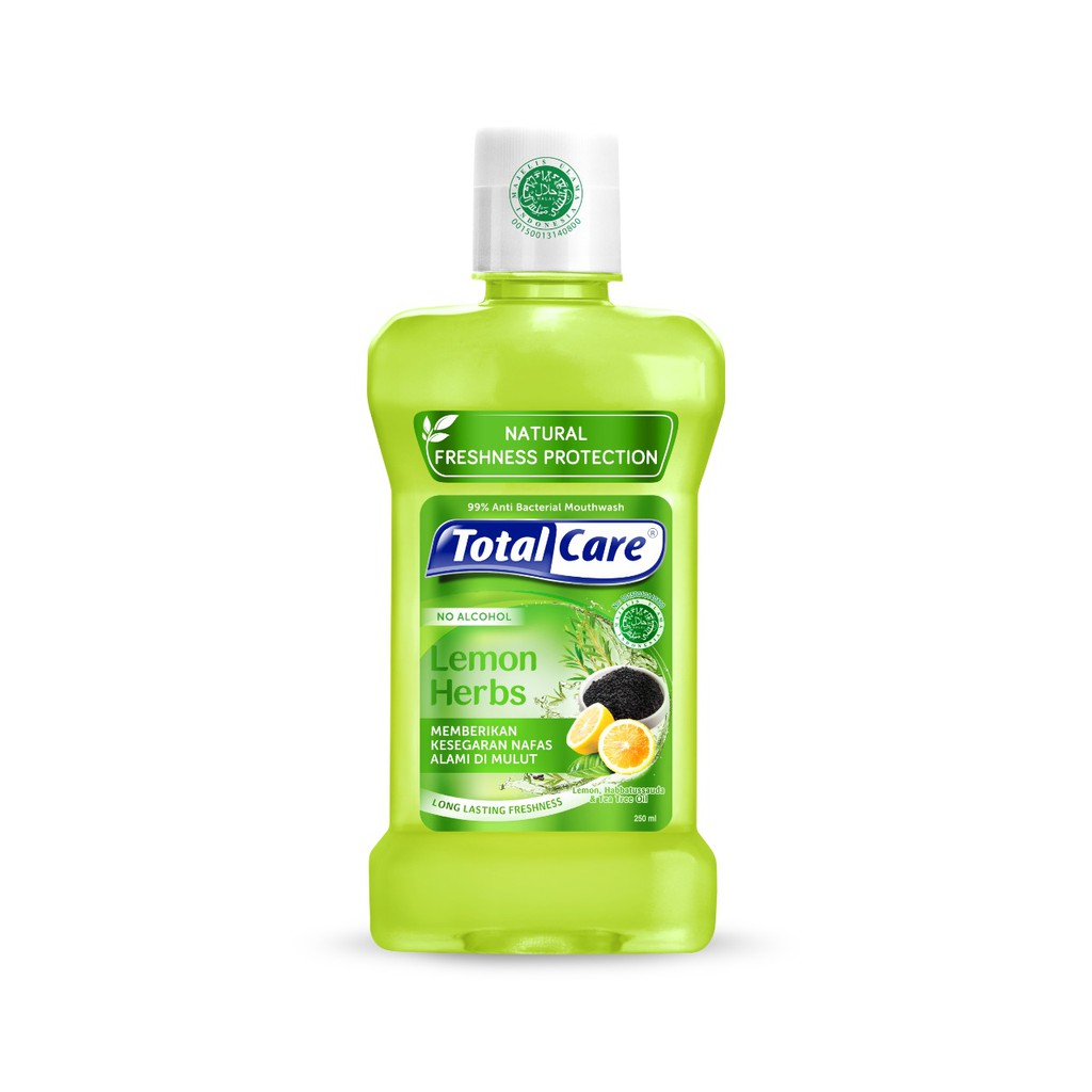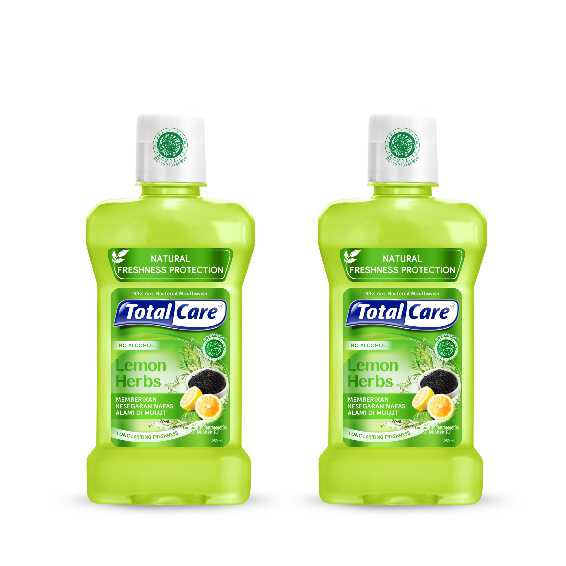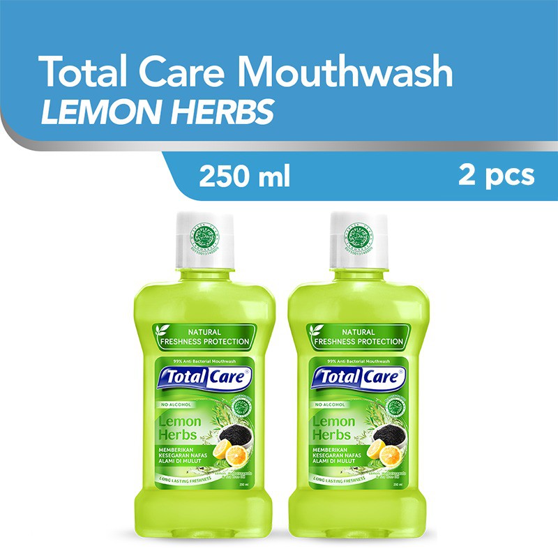 Total Care Mouthwash Lemon Herbs 250ml (2pcs) - Obat Kumur Antiseptik Rasa Lemon Segar Halal Tanpa Alkohol isi 2 (Exp : 05.2028)