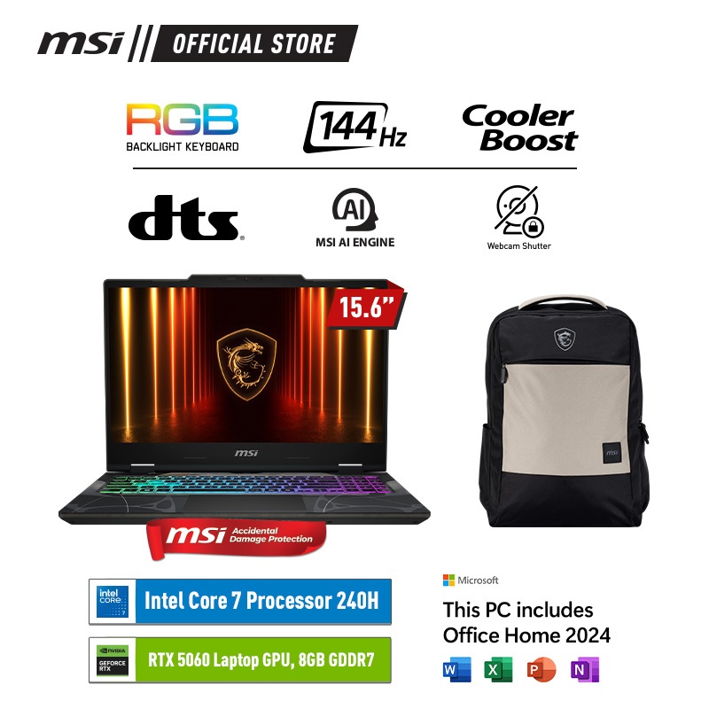MSI Cyborg 15 B2RWFKG Core 7 240H 512GB SSD 16GB RTX5060 8GB 15.6" FHD W11Home +OHS24