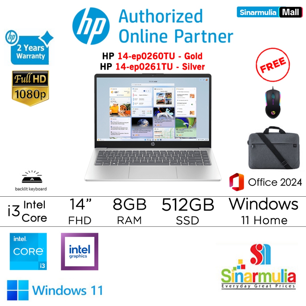 HP 14 i3-1315U 512GB SSD 8GB FHD Win11+OHS - ep0260TU/ep0261TU