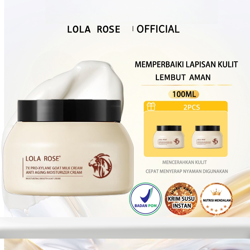 LOLA ROSE Goat Milk Moisturizer 100ml Krim Susu Kambing BPOM Anti Aging Melembapkan Mencerahkan Wajah 7X Pro-Xylane Anti Aging