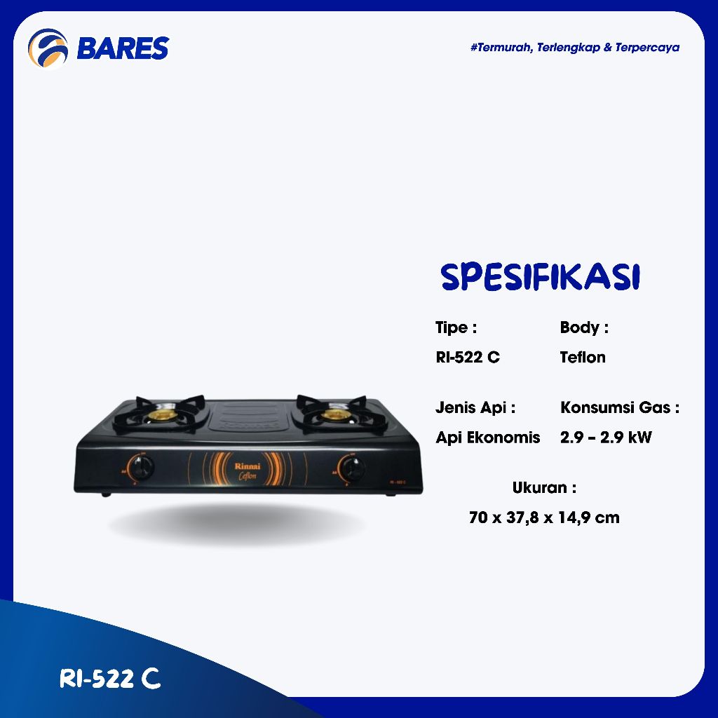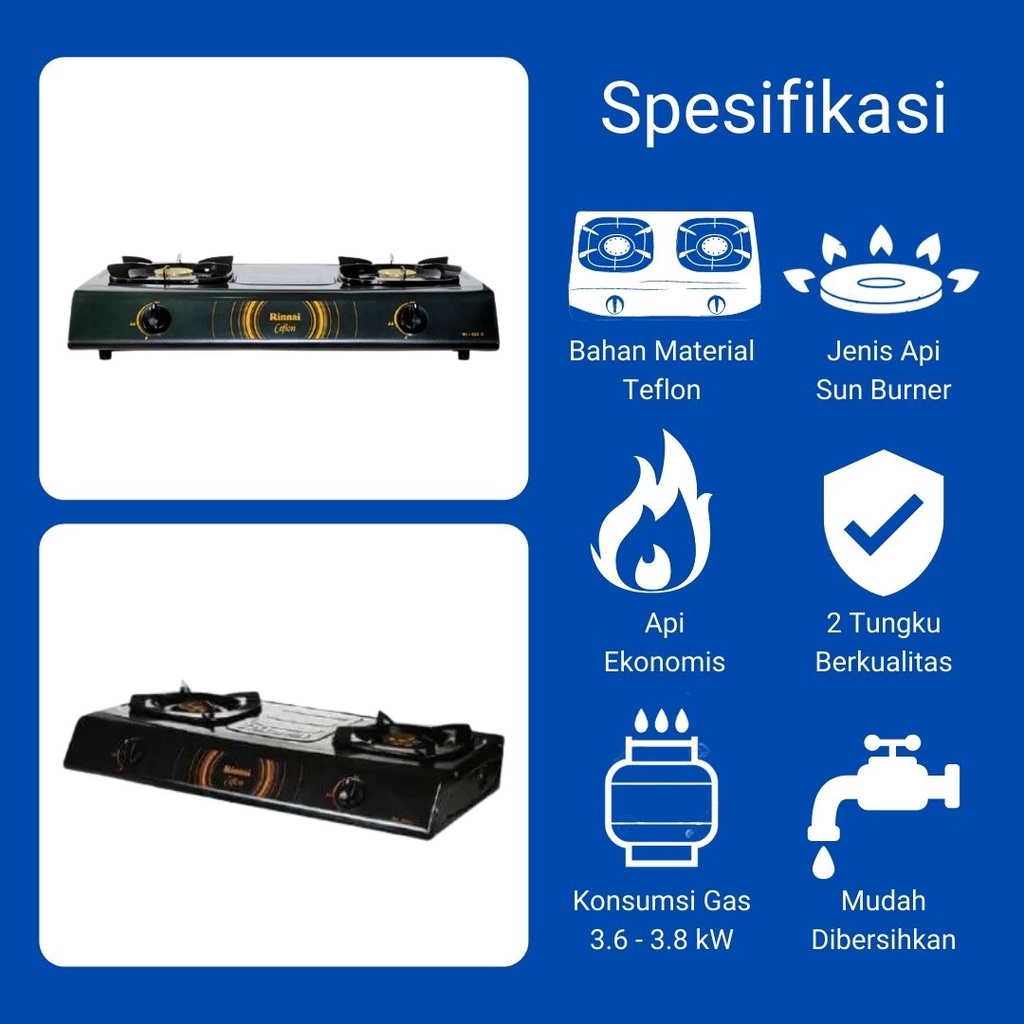Rinnai RI-522 C Kompor Gas 2 Tungku Body Teflon Dengan Api Sun Bunner