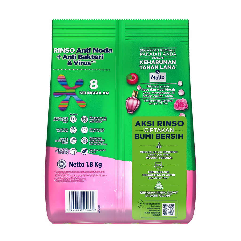 Rinso Molto Detergent Bubuk Deterjen Anti Noda Rose Fresh 1.8 kg