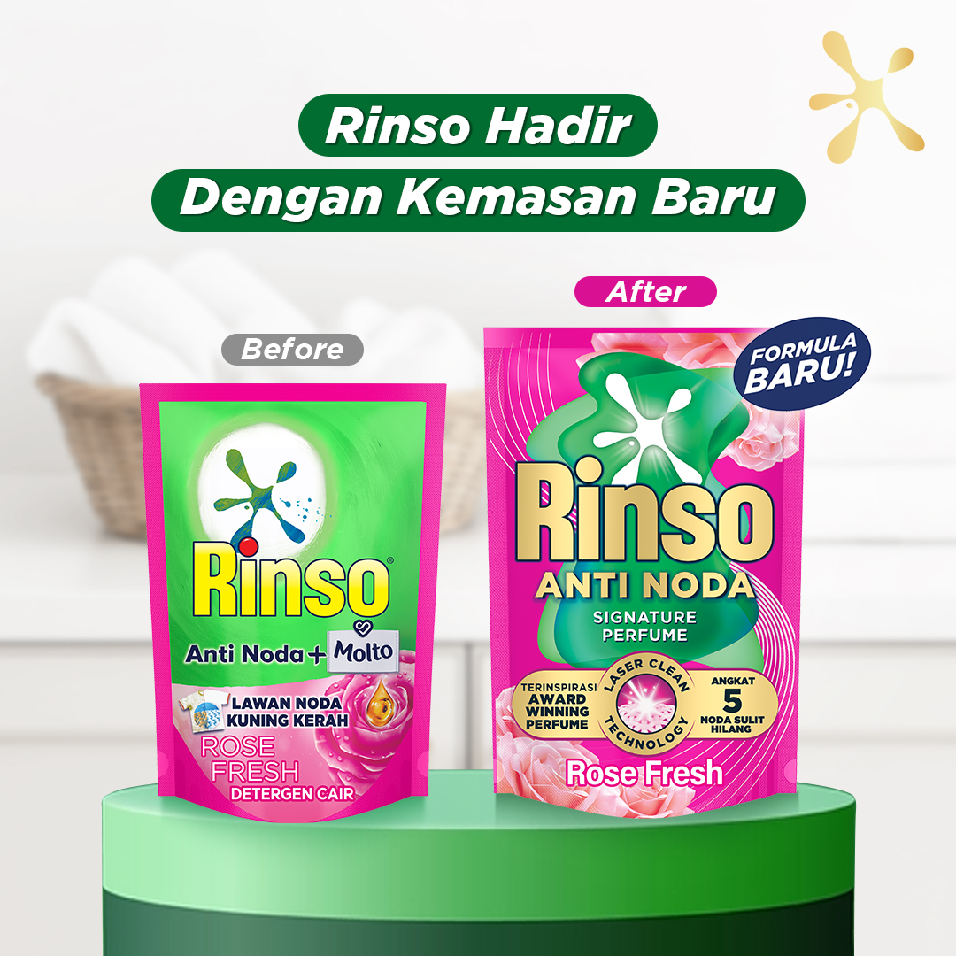 [Extra Isi 35%] Rinso Baru Detergen Cair Varian Rose Fresh 700g