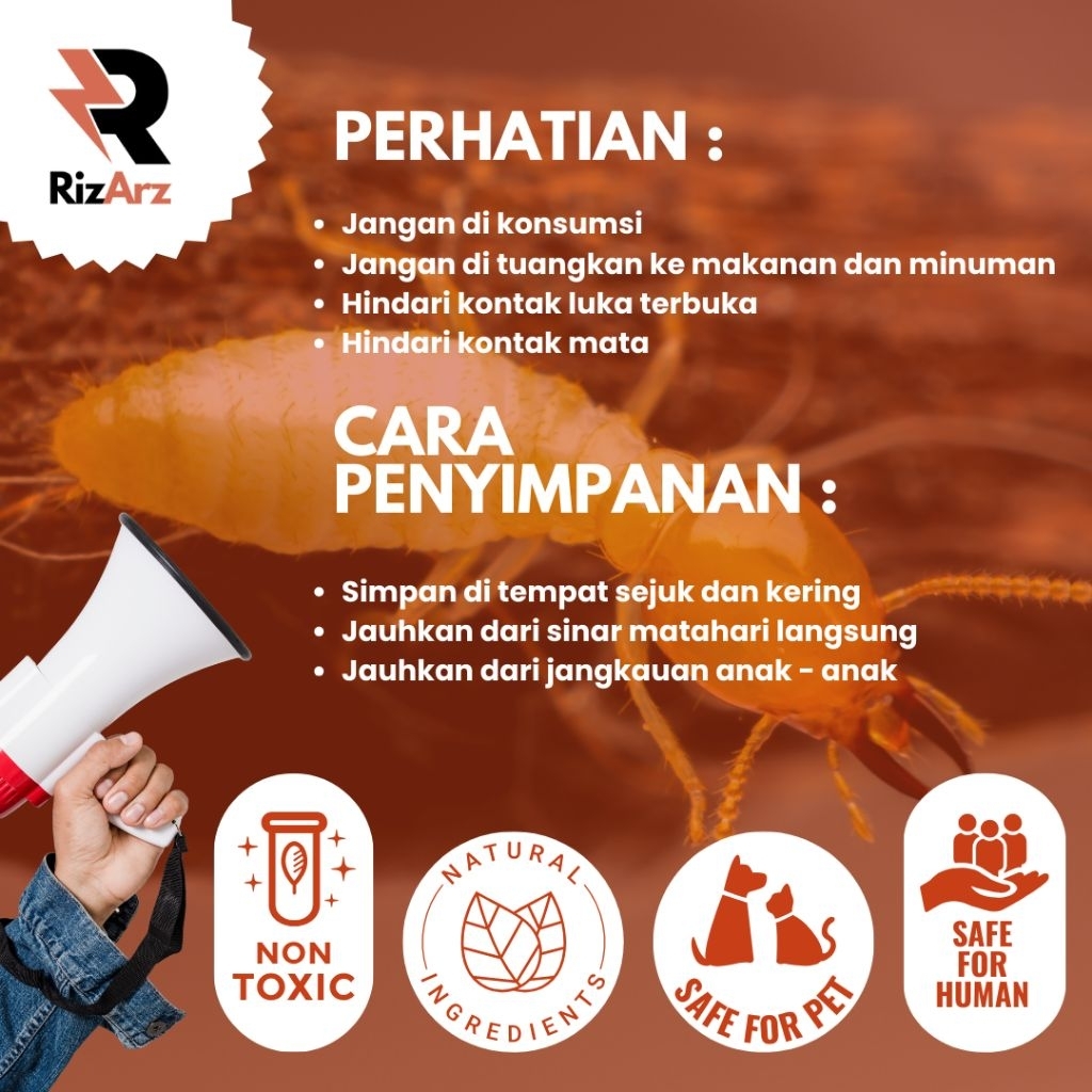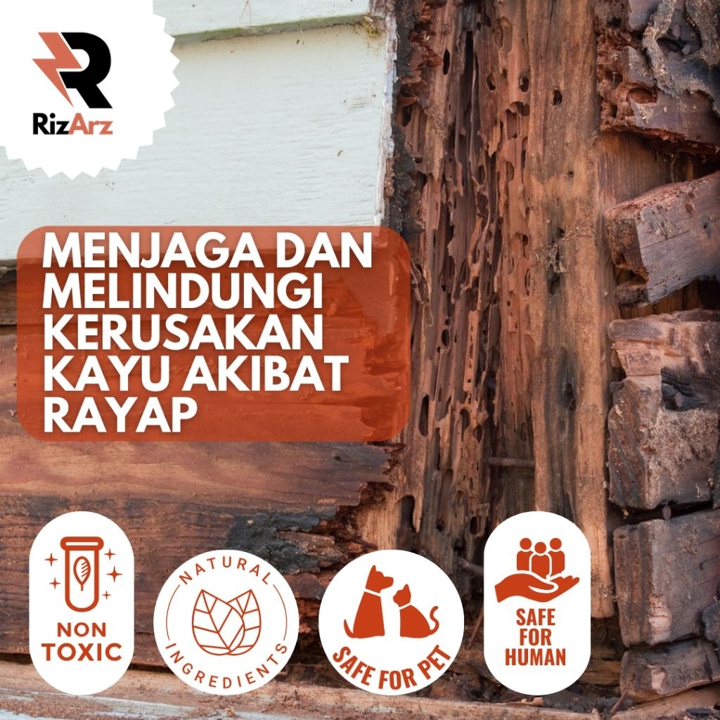 Rizarz Anti Rayap Pembasmi Rayap Ampuh Dengan Formula Penghilang Rayap Efektif Menjaga Perabot dan Struktur Kayu dari Kerusakan Dilengkapi Anti Bakterial Aman untuk Lingkungan Mudah Digunakan