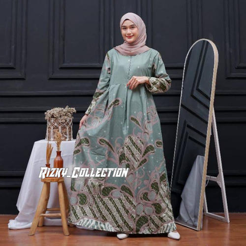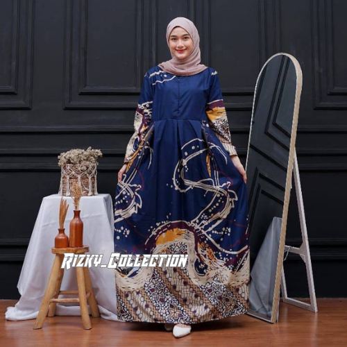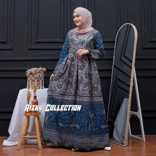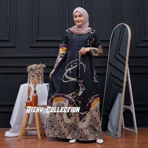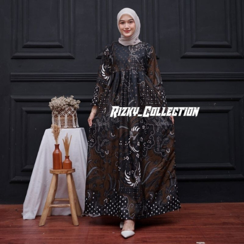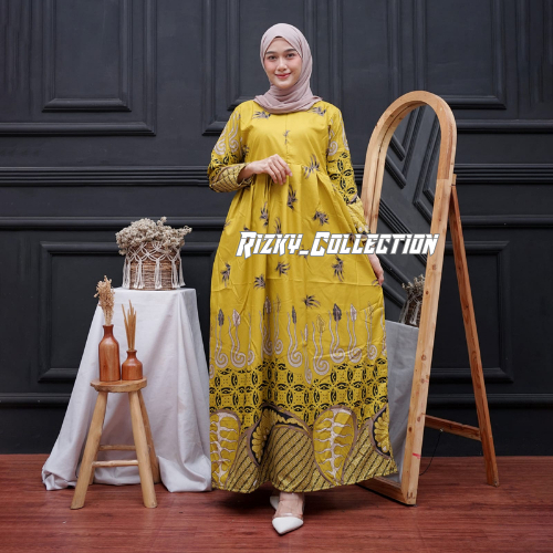 Rizky_collection2 - MS GAMIS BATIK SRIWEDARI MAXI BUMIL/BUSUI KATUN SOGAN ALLSIZE & JUMBO Modern Syar'i Terbaru Kekinian