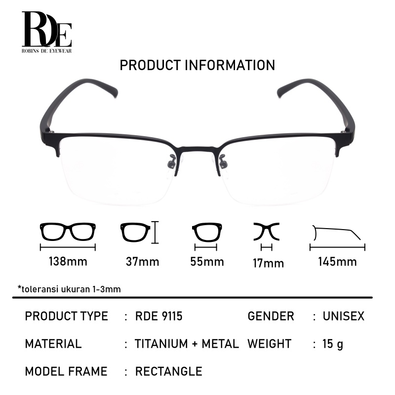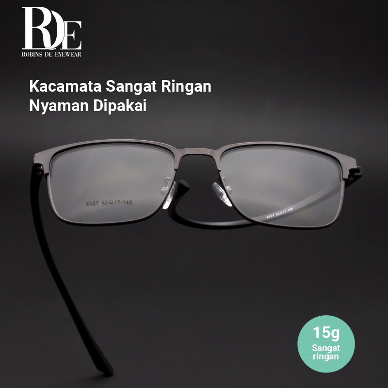 ROBINS Kacamata Photocromic Minus Style Bisnis Lentur Frame Kacamata Pria Wanita Blueray Bluecromic 9115
