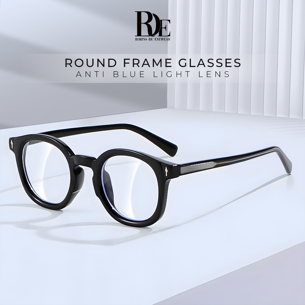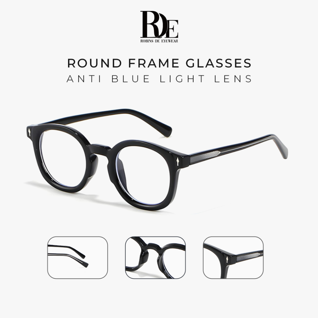 Robins Kacamata Bulat Anti Radiasi Komputer Gadget Anti Radiasi Uv Bisa Custome Minus Silinder Antiblueray Photocromic Bluecromic Frame PC Fashion Style Terbaru Pria Wanita 334 AB