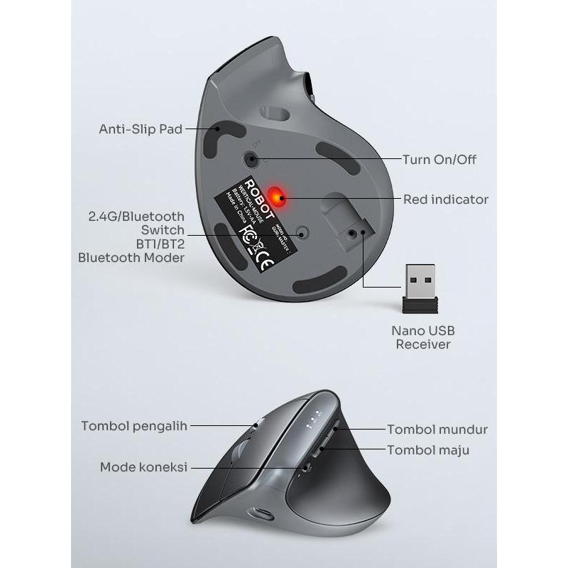 Robot Guru Master 2 / GuruMaster 2 Mouse Bluetooth Wireless Vertical