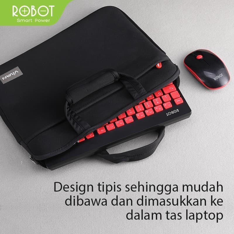 Robot KM3000 Portable Mini Wireless Keyboard & Mouse Combo - Merah