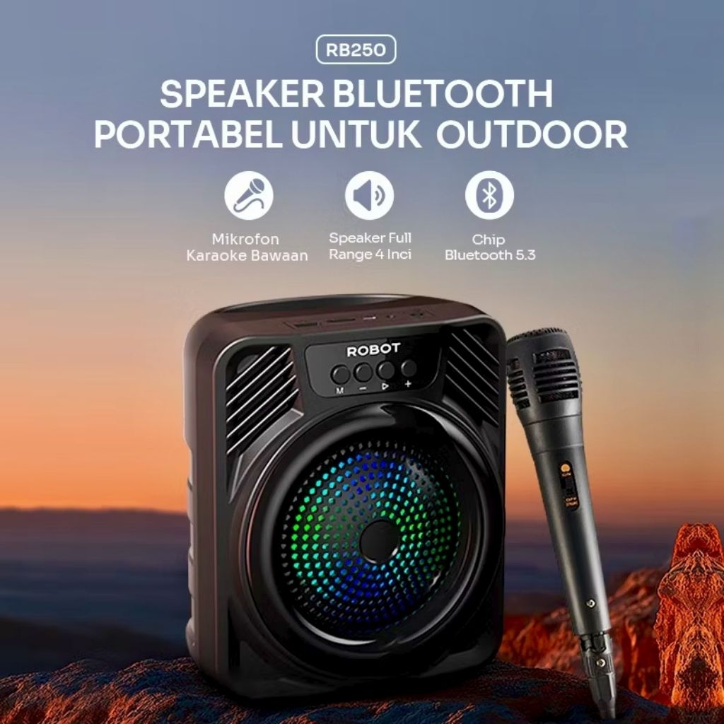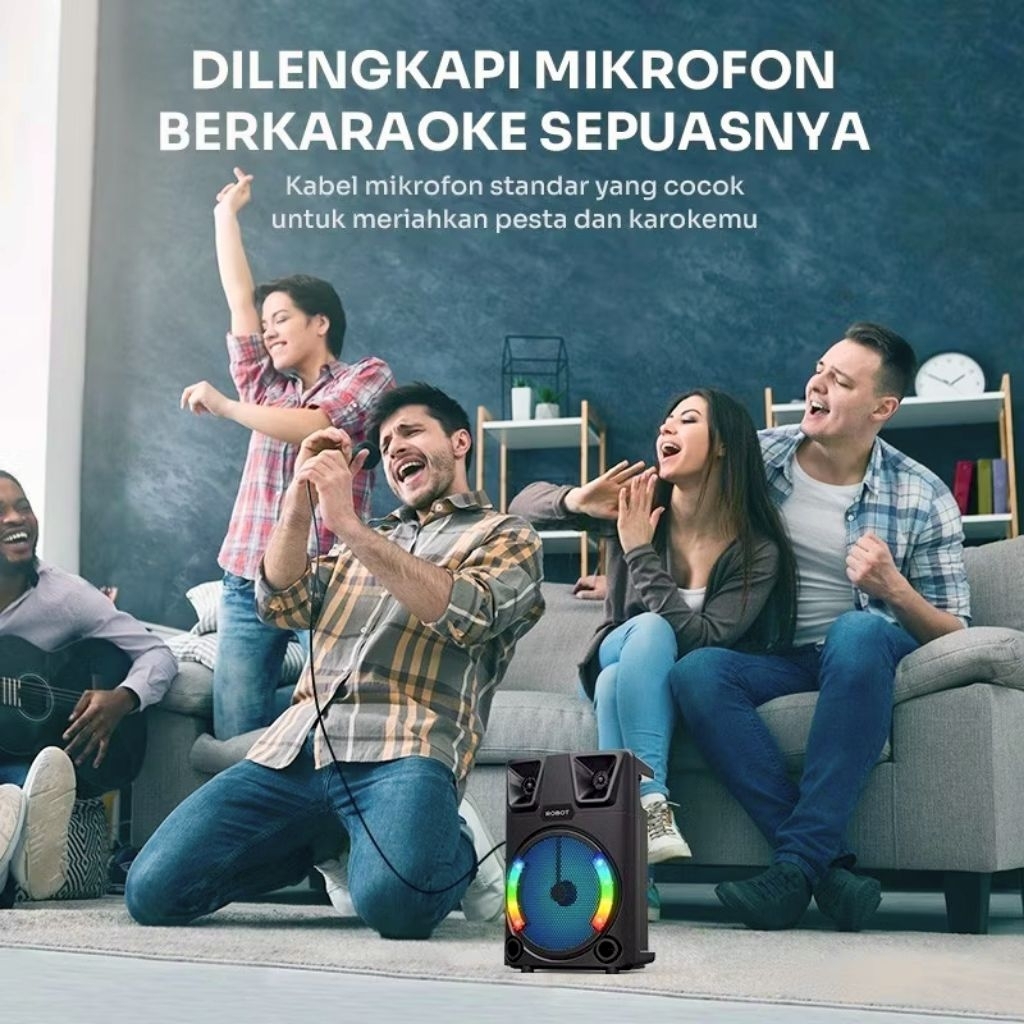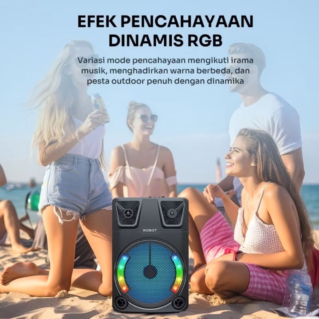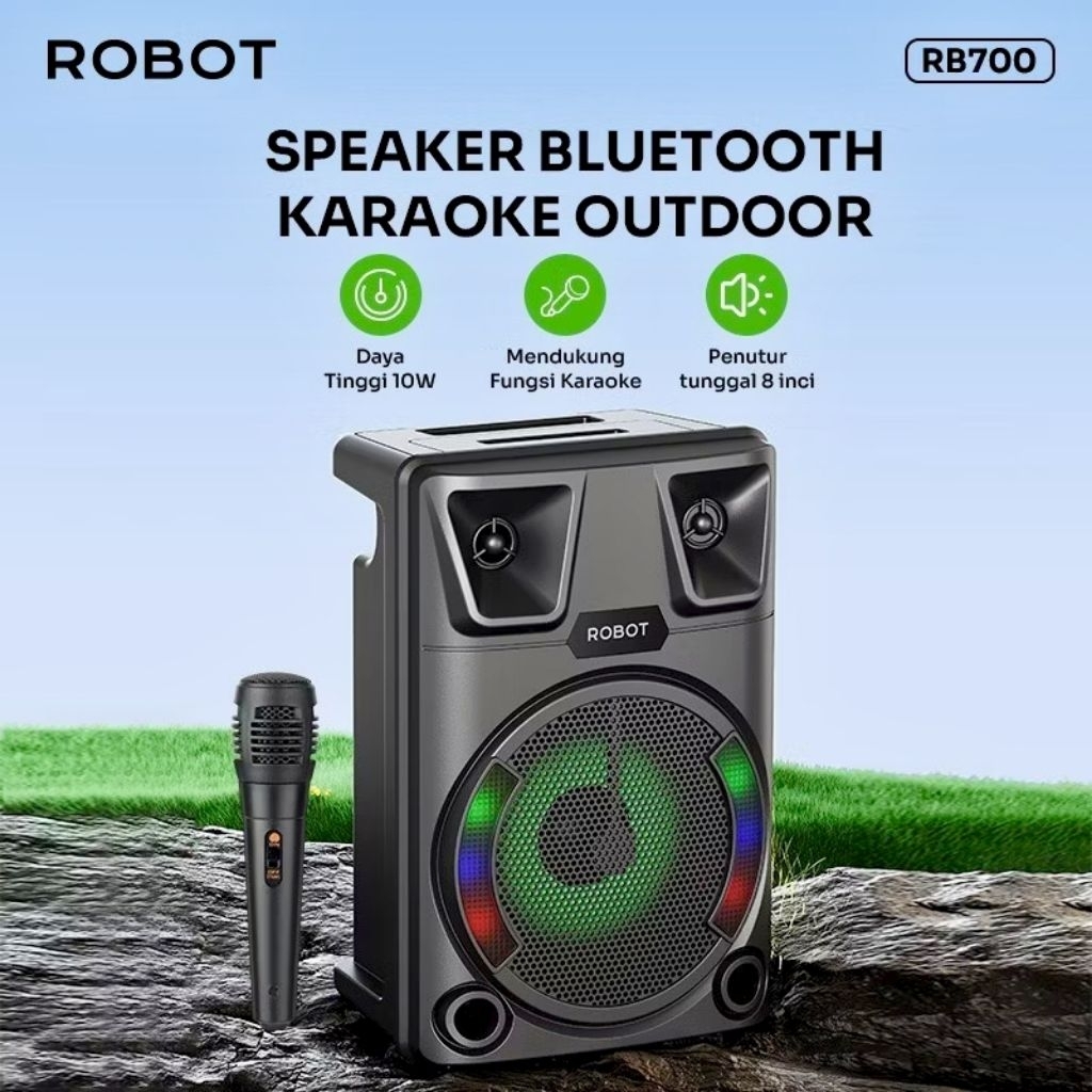 Robot RB700 Speaker Karaoke Bluetooth 5.3 8 inch 10W With Microphone Efek Lampu RGB Original Resmi