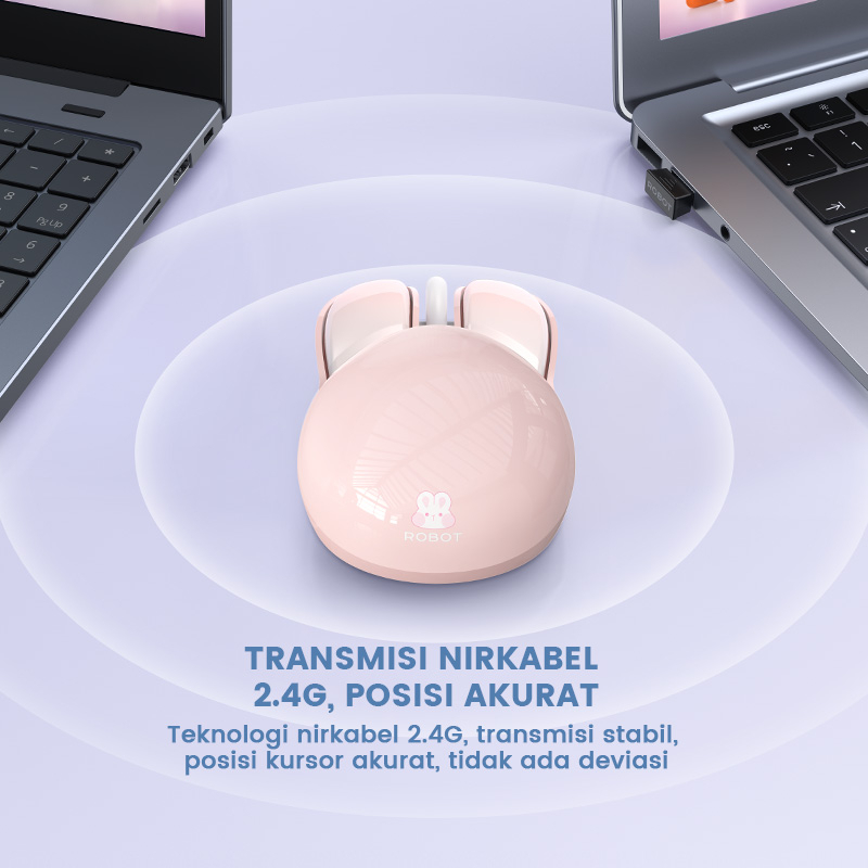 Robot M380 Mouse Wireless Silent Key Portable Rabbit Kelinci Design Lucu Optical Mouse 1200DPI 2.4Ghz Original