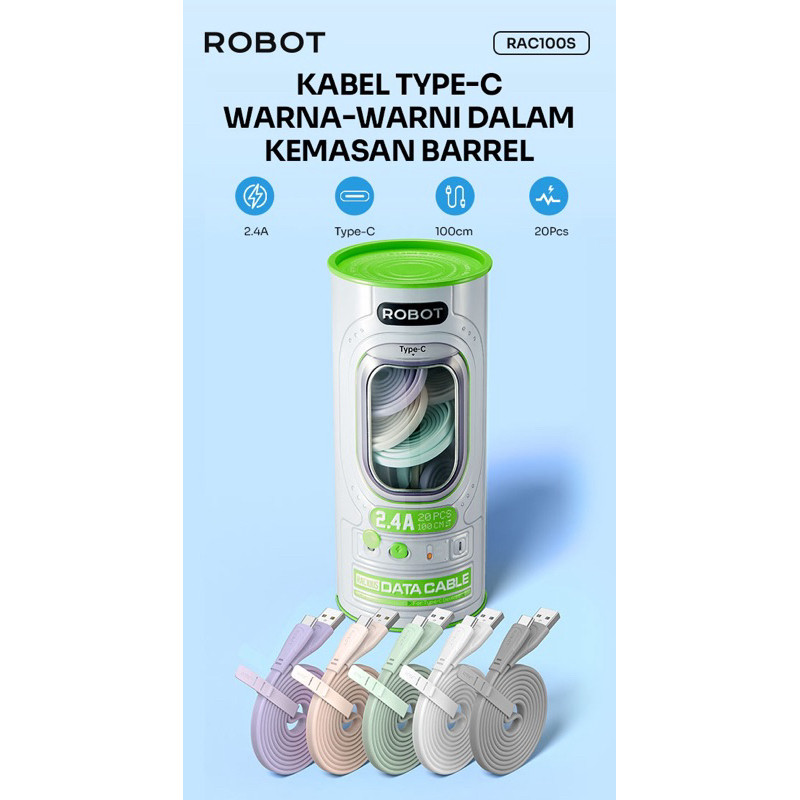 Robot RAM100S / RAC100S / RAL100S Kabel Data 2 in 1 Pengisian Daya dan Trasmisi Data Micro USB / Type-C / Lightning Original