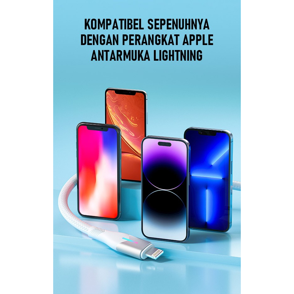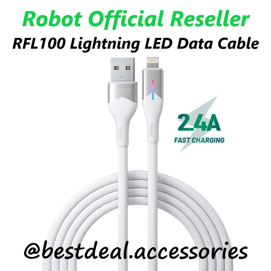 Robot RFL100 2.4A Lightning Braided Kabel Data Cable LED Light