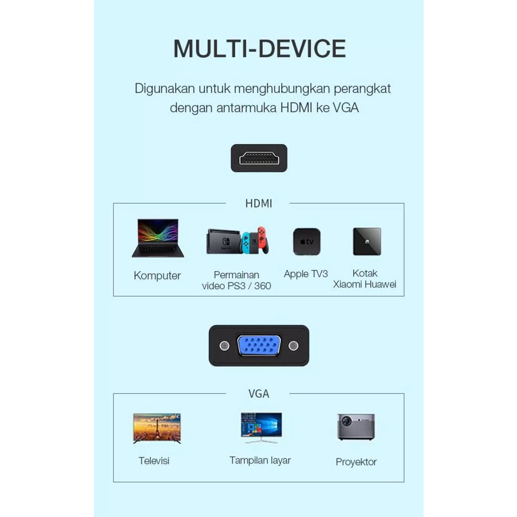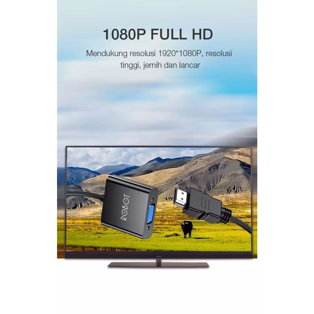 Robot RHV10 Kabel HDMI To VGA Converter Adapter Laptop TV Proyektor HD