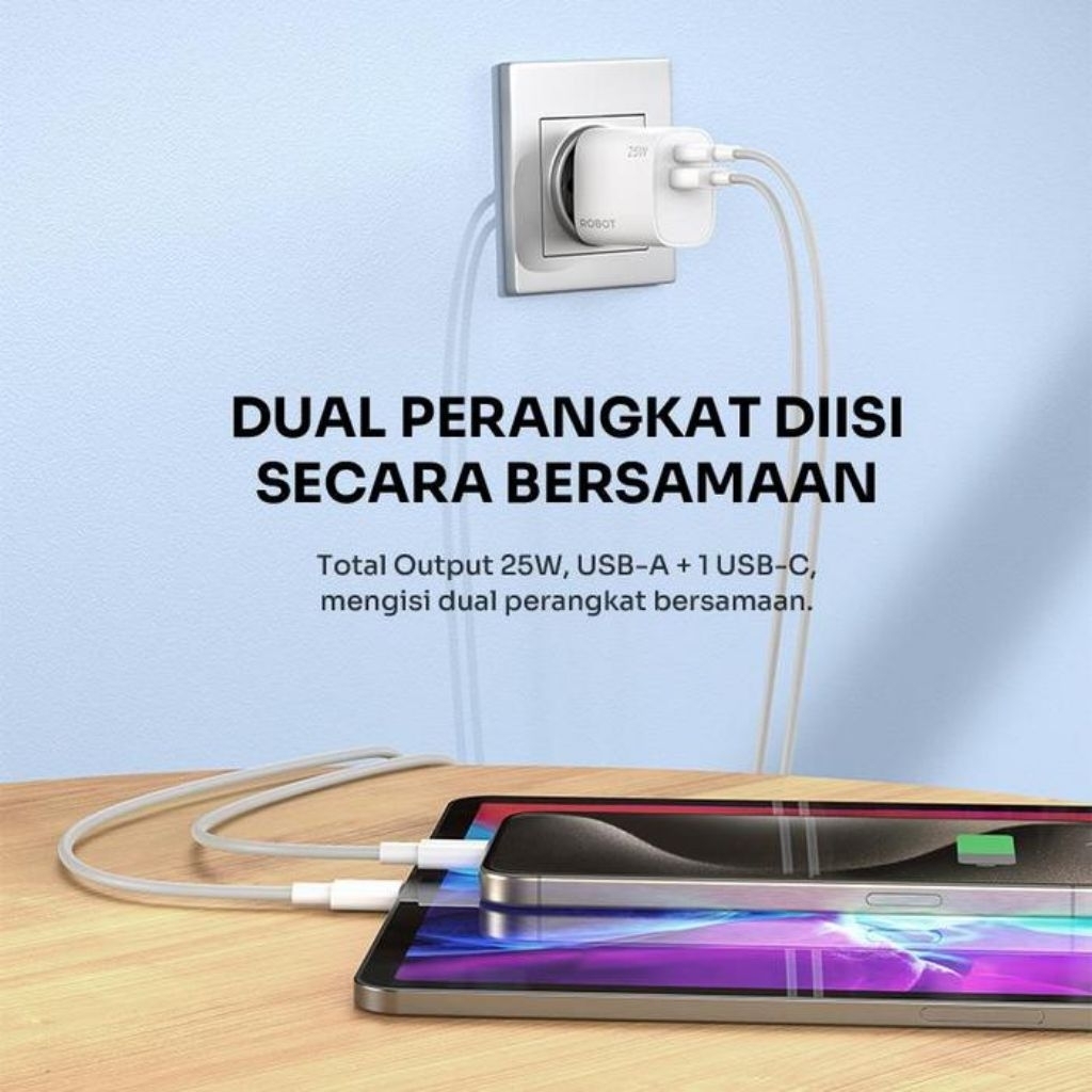 Robot RT-P25 Charger Adapter Fast Charging 25W Kabel USB-A to Type-C PD USB-C Kepala Power