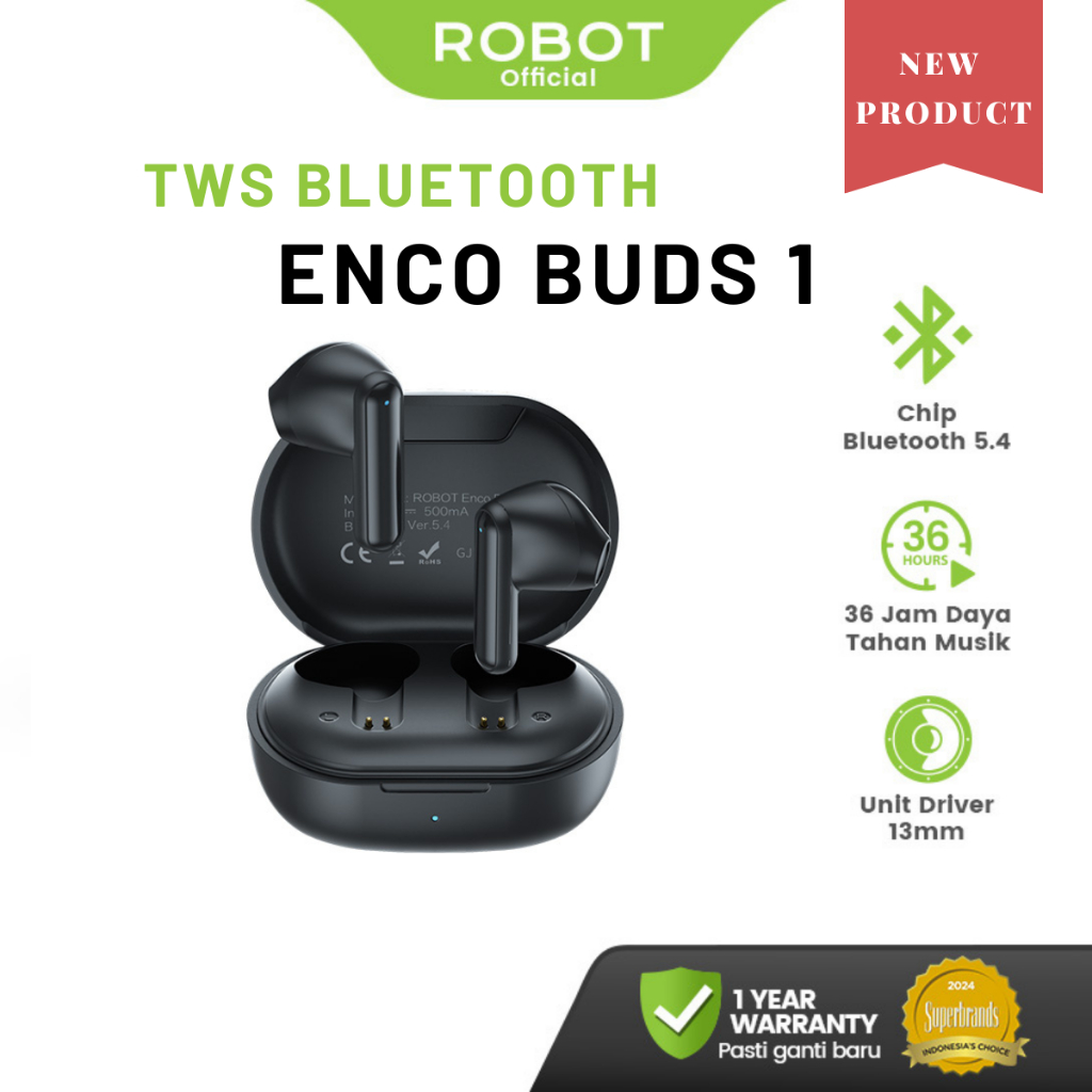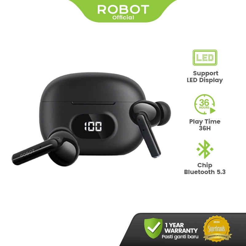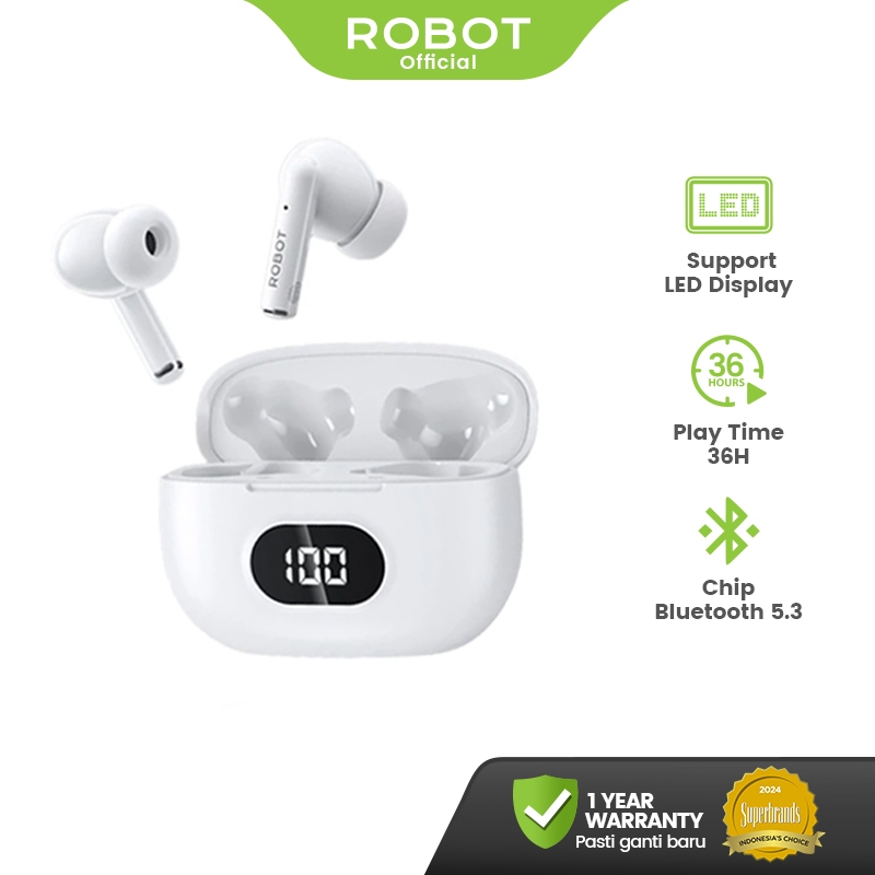 Robot True Wireless Earbuds Deep Bass TWS Bluetooth 5.3 Smart Control HD Call Earphone Airbuds T70 Original - Garansi 1 Tahun