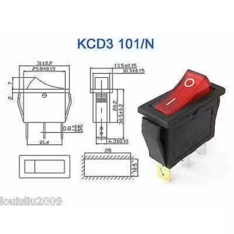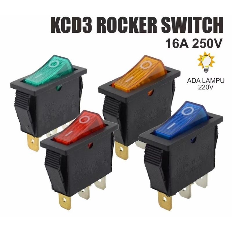 Rocker Saklar Pipih Ukuran 30x13mm Led Lampu 3 pin