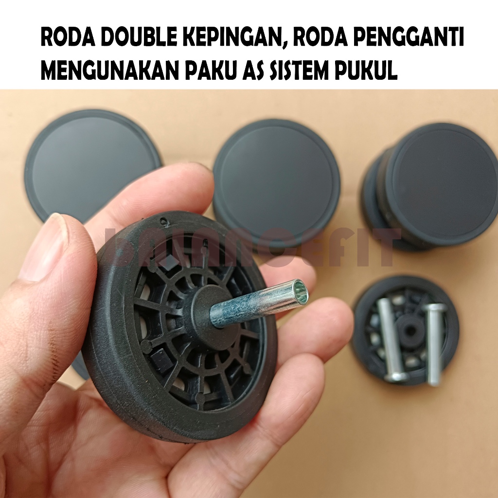 Roda Koper Pengganti Hitam | Roda Double diameter 55mm | replacement luggage wheel | Sistem Pukul