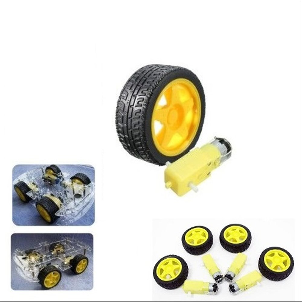 Roda + Motor DC Gearbox Smart Car Robot Tyre 1:48 Gear Ratio Ban Kuning Arduino Torsi Robot Mobil Robotic Set