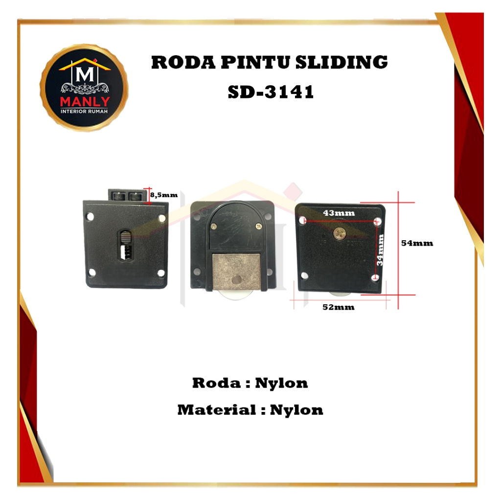 Roda Pintu Lemari Geser Sliding SD 3141 + Rel Tanam Pintu SD 3141, Isi 2 Set Roda + 2 Btg Rel