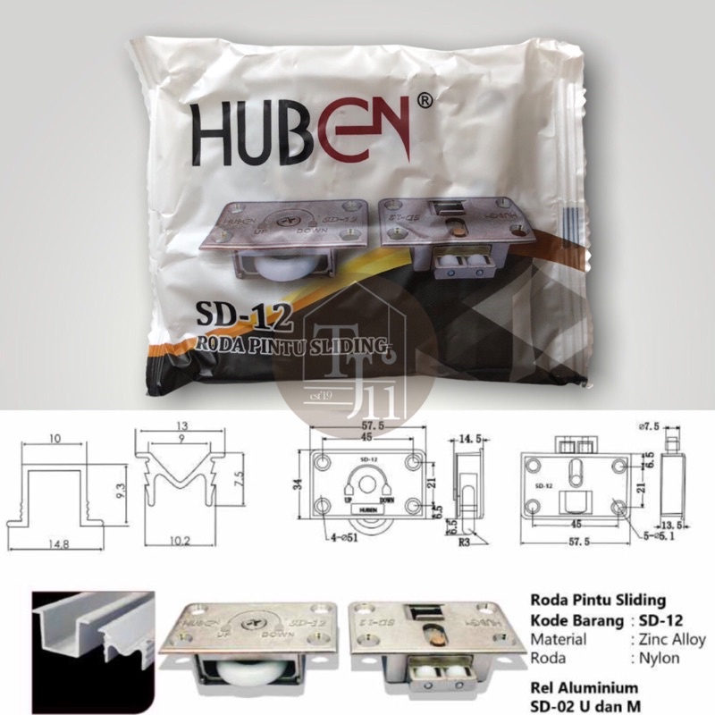 Roda Sliding SD12 SD-12 SD 12 Huben / Roda Sliding Rel Aluminium HUBEN SD02 U dan M / Roda SD12