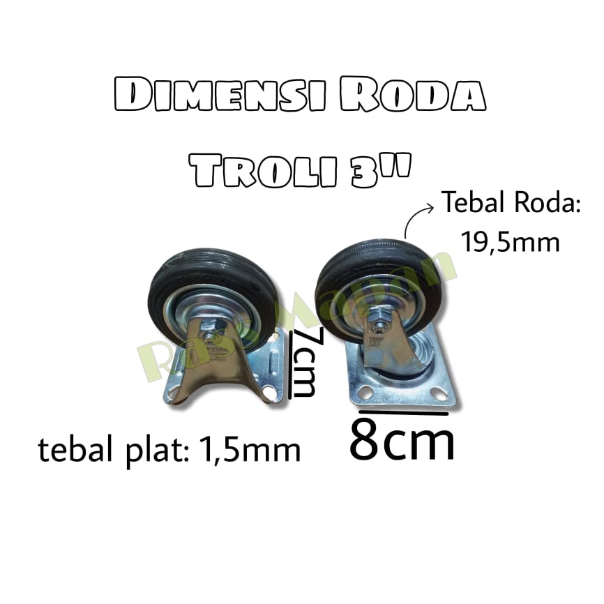 Roda Troley Troli Gerobak Rombong Hidup Mati 3" inch