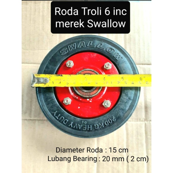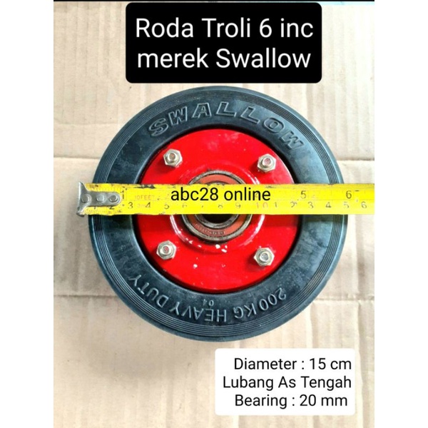 Roda Troli ukuran 6 inc Swallow roda grobag tunggal bahan karet padat berkualitas