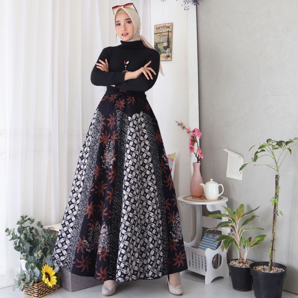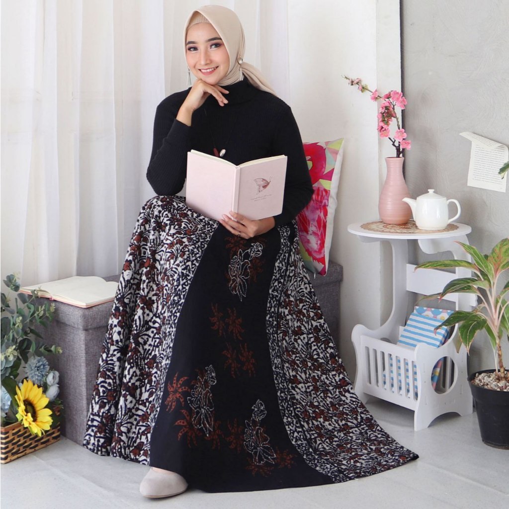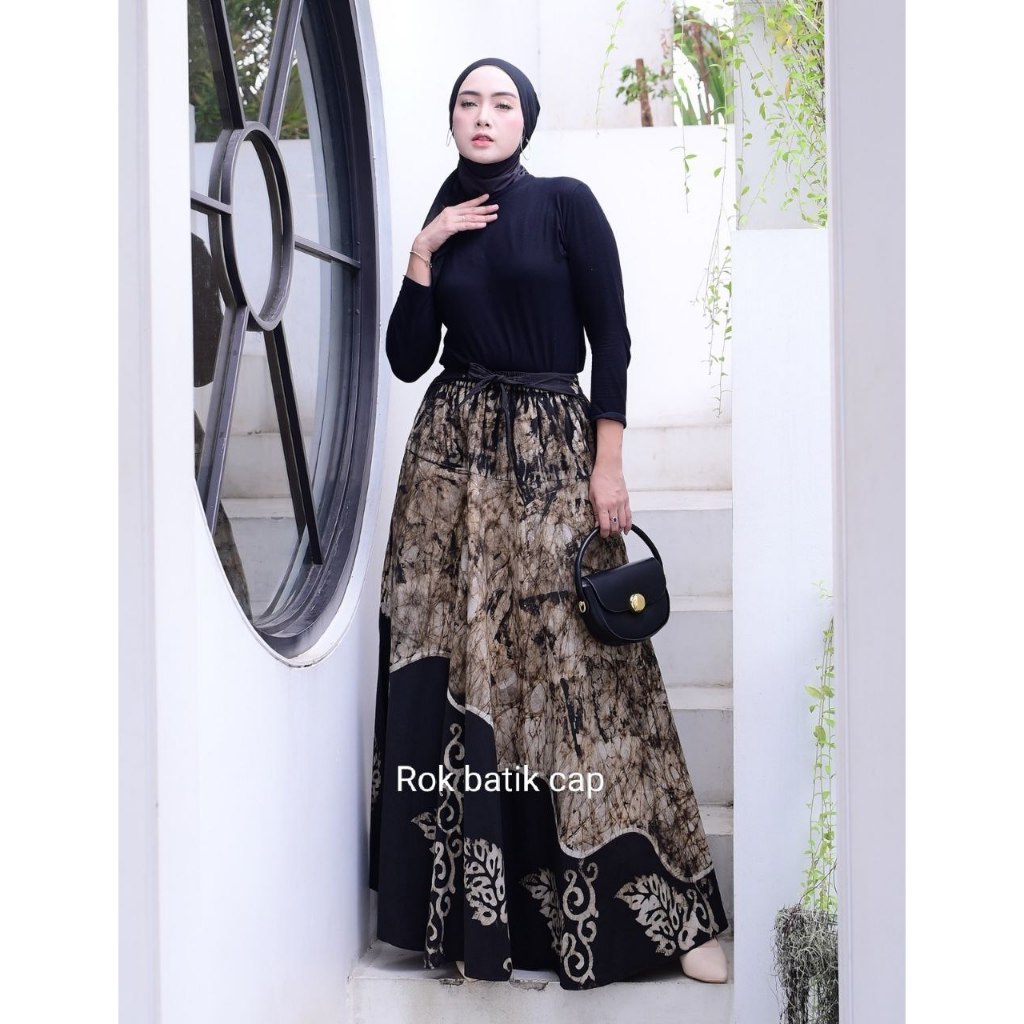 Rok Batik Hitam Payung Jumbo Panjang Lebar Dewasa Bawahan Batik Cap Premium Sogan Modern Klasik
