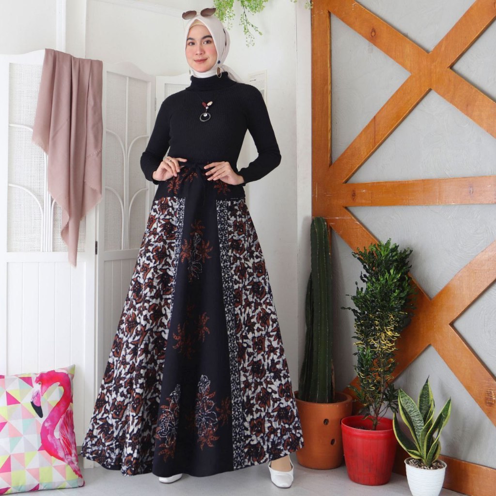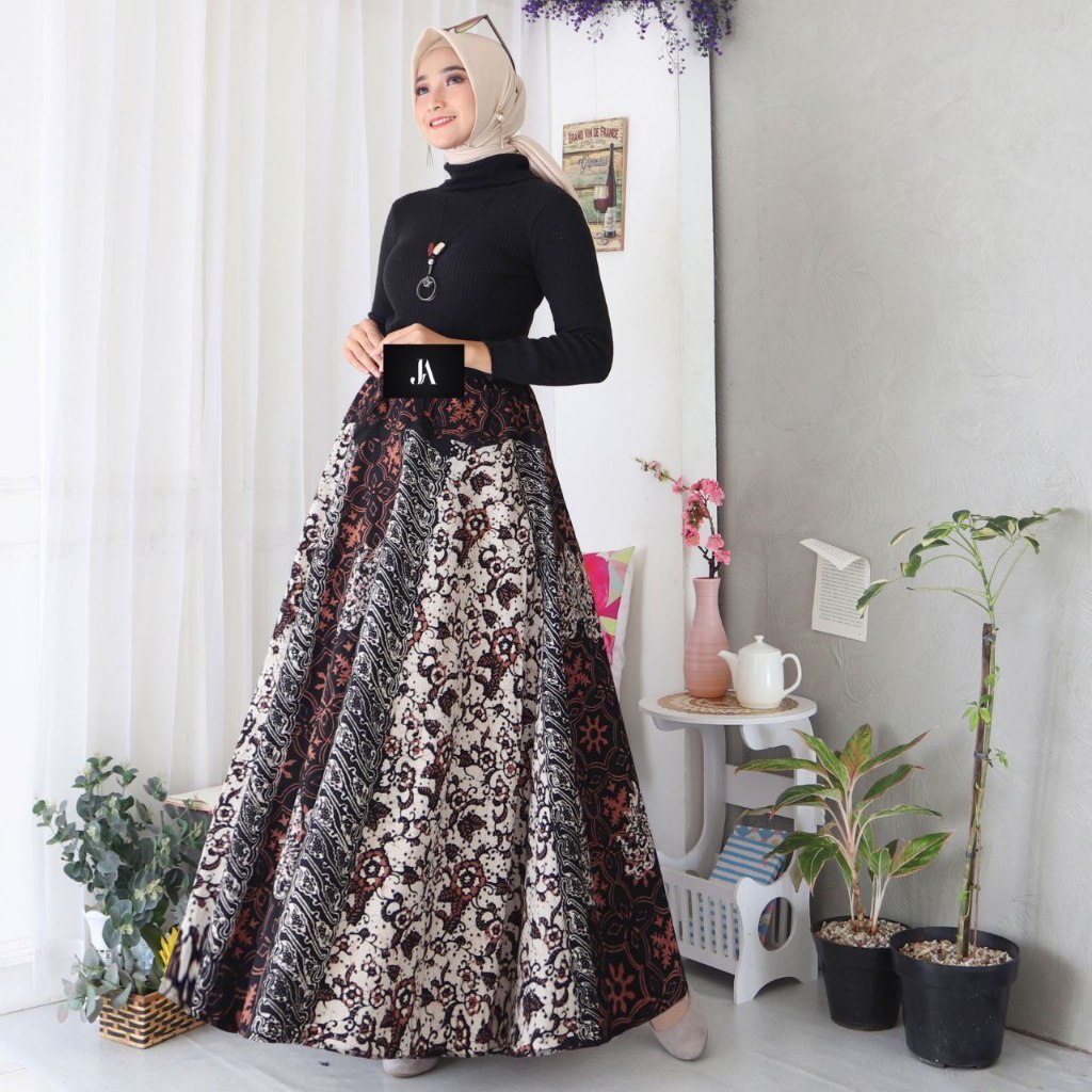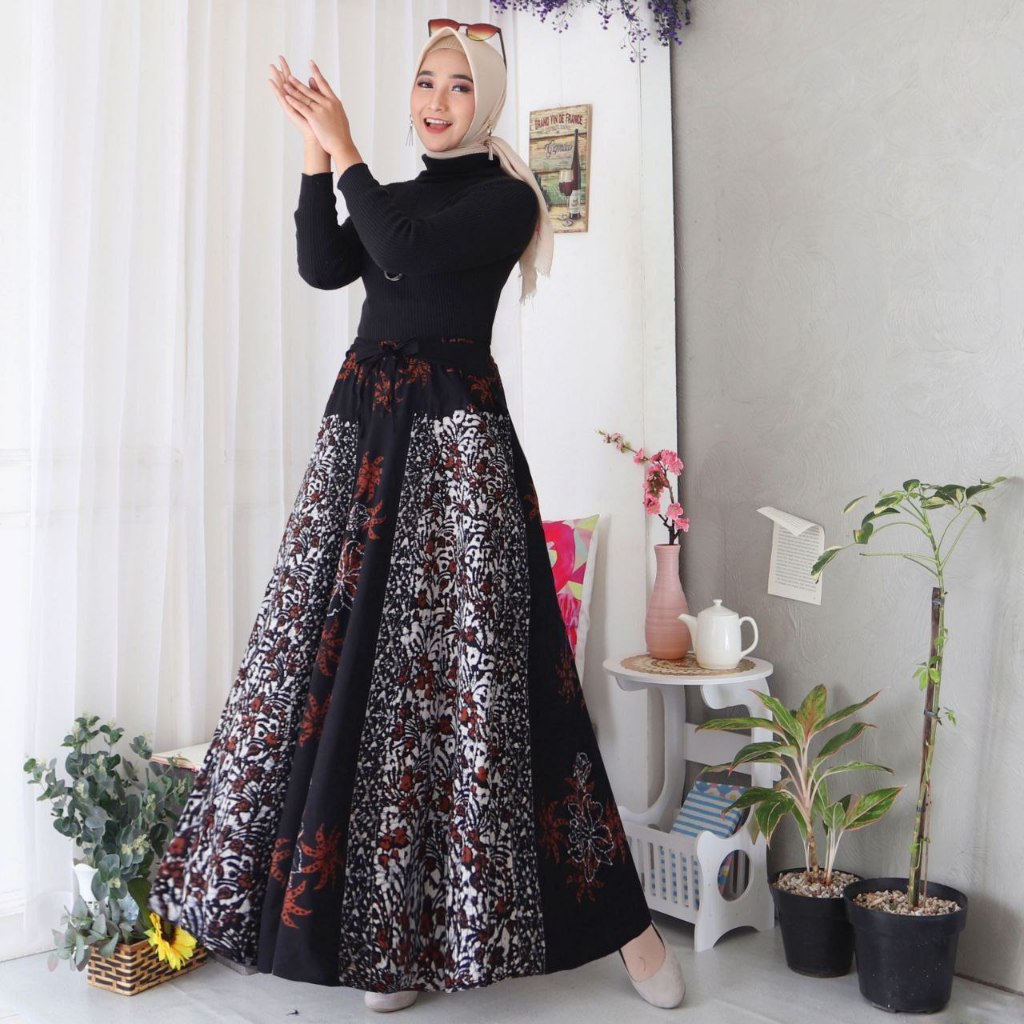 Rok Batik Hitam Payung Jumbo Panjang Lebar Dewasa Bawahan Batik Cap Premium Sogan Modern Klasik