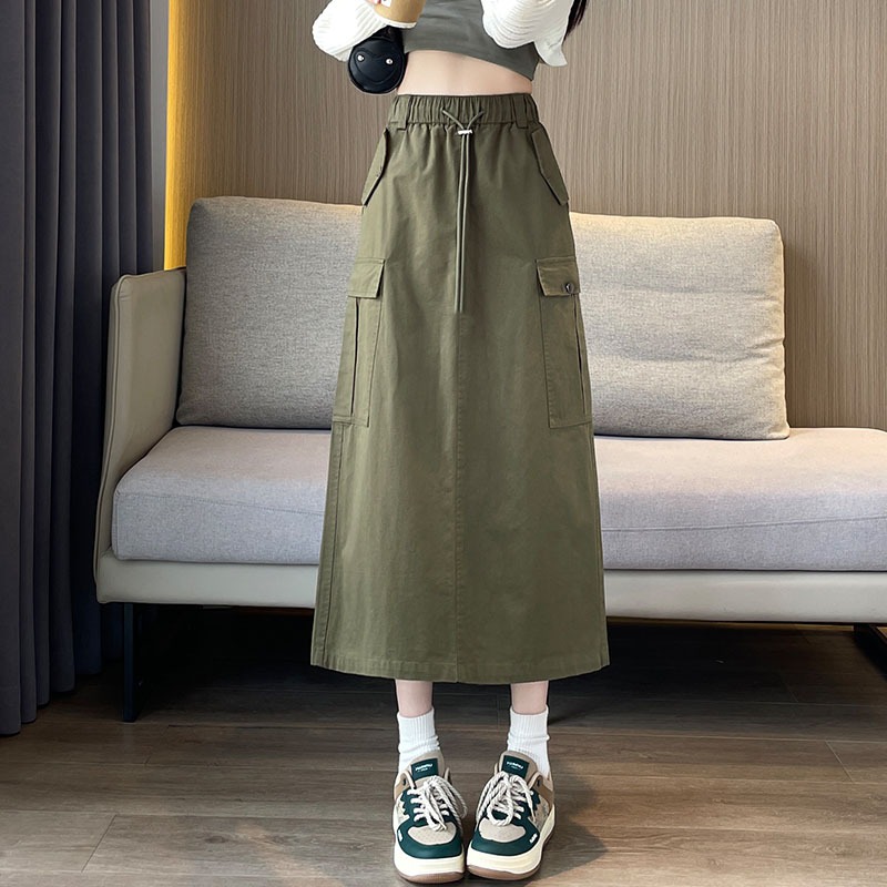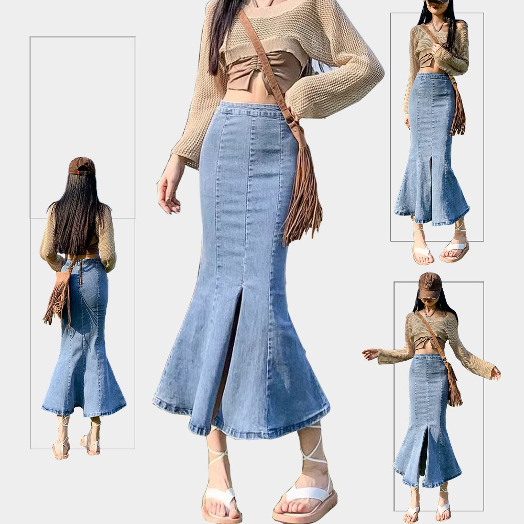 Rok Panjang Denim Skirt Rok Midi Highwaist Jeans Korea Style rok A-Line tombol Fashion ootd rok jeans jumbo size kekinian