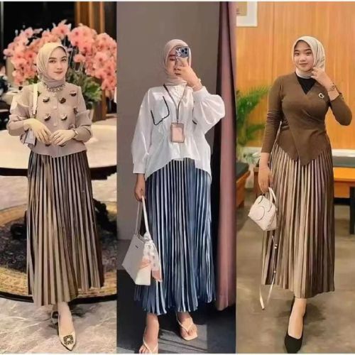 Rok Plisket Bludru Velvet Panjang Premium Import