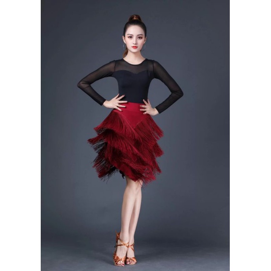 Rok Rumbai V Belah Samping Rok Line Dance Belly Dance Salsa Latin Kostum Model Terbaru Terlaris RVBS-121