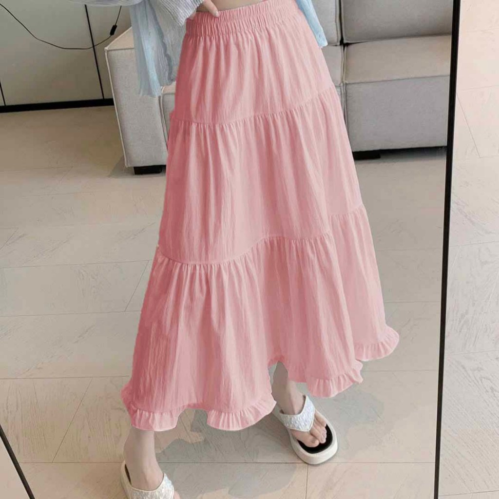 Rok Wanita Ruffel Susun Kekinian Skirt Korean Style Icon Premium Termurah