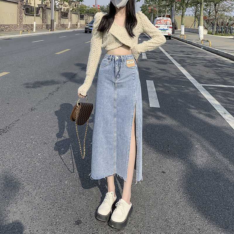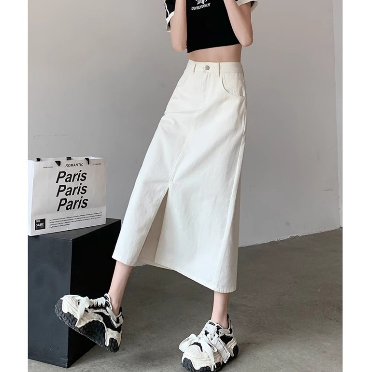 Rok jeans 7 8 wanita Rok korean style Rok jeans panjang Rok jeans span rok wanita kekinian jumbo size 5XL dewasa rok