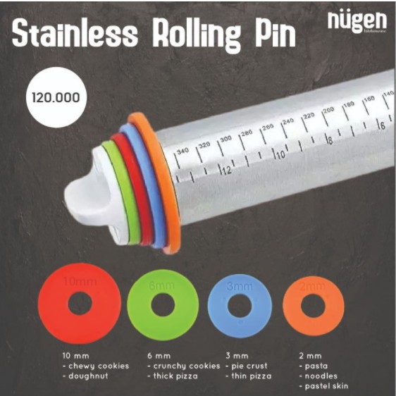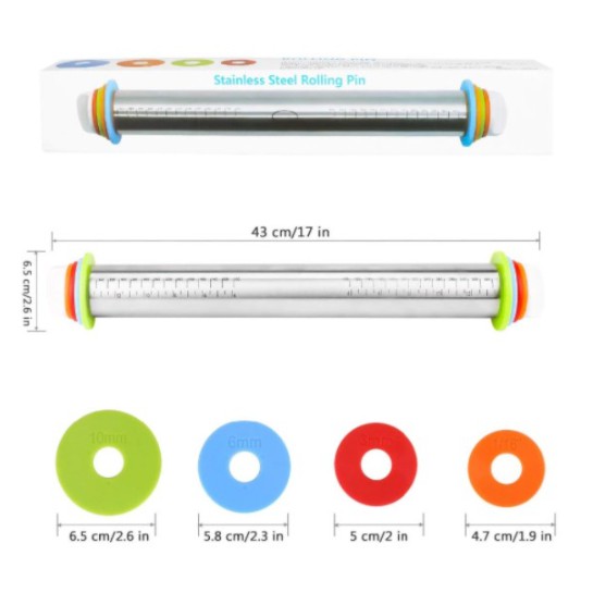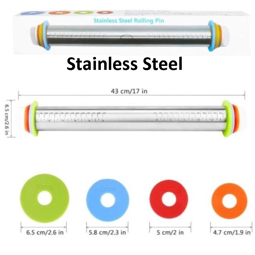 Rolling Pin Adjustable Stainless Rolling Pin Kayu Penggilas Adonan 4 Ketebalan Roling Pin Penggiling Adonan Kue