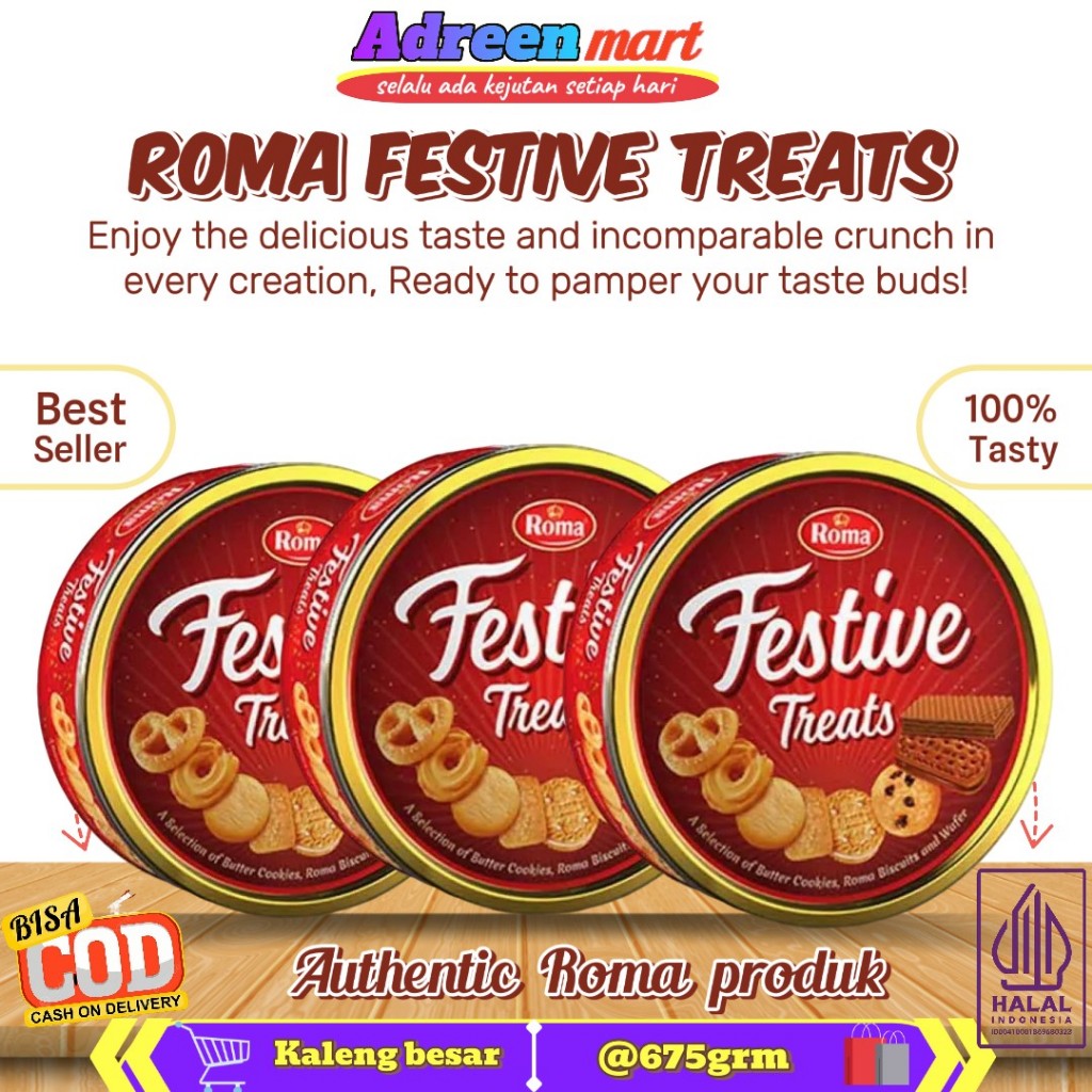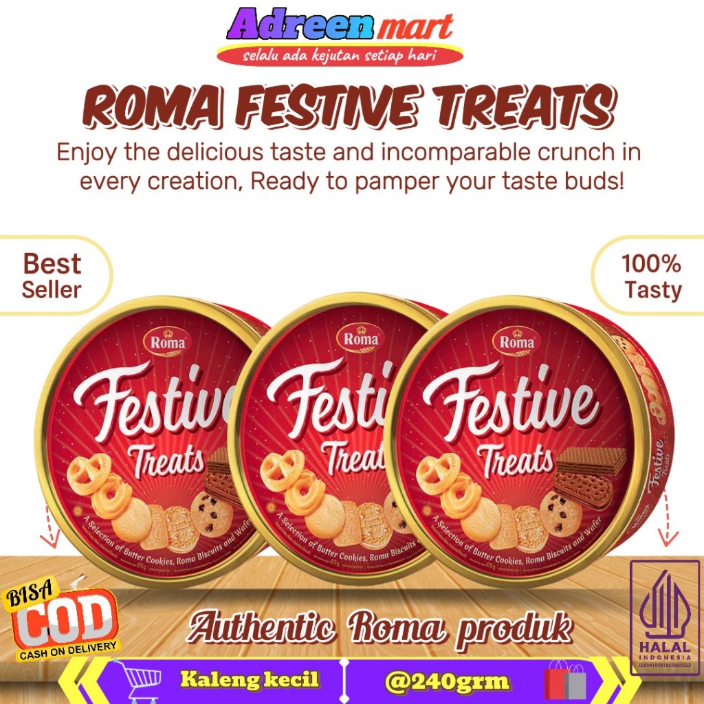 Roma Festive Treats 240 | 675gr-Biskuit Wafer Kaleng-Cemilan-Hampers-Lebaran