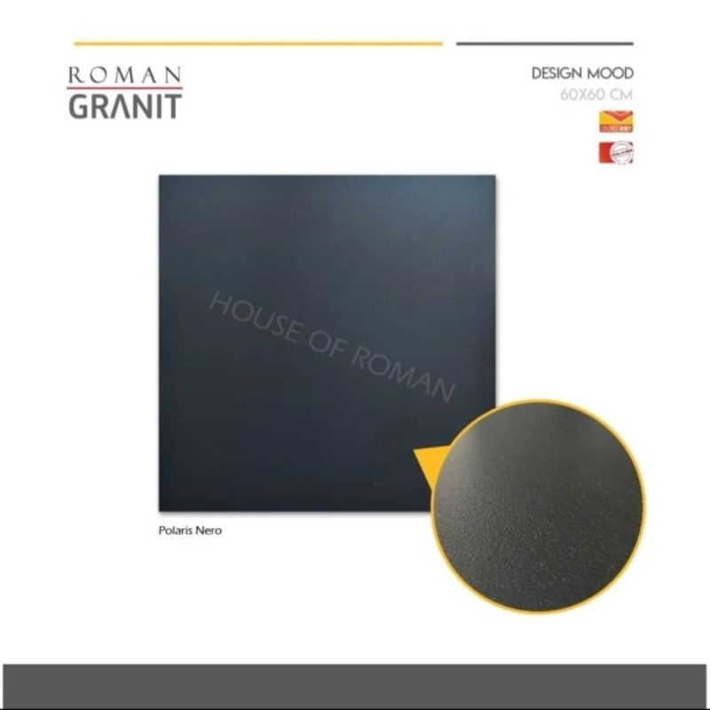 Roman Granit 60x60 dPolaris Nero (Design Mood) / Lantai Granit Hitam / Lantai Warna Gelap / Lantai Hitam / Lantai Hitam Polos / Keramik Hitam Polos / Granit Hitam Polos / Lantai Outdoor / Lantai Carport / Keramik Teras / Keramik Parkiran Anti Slip