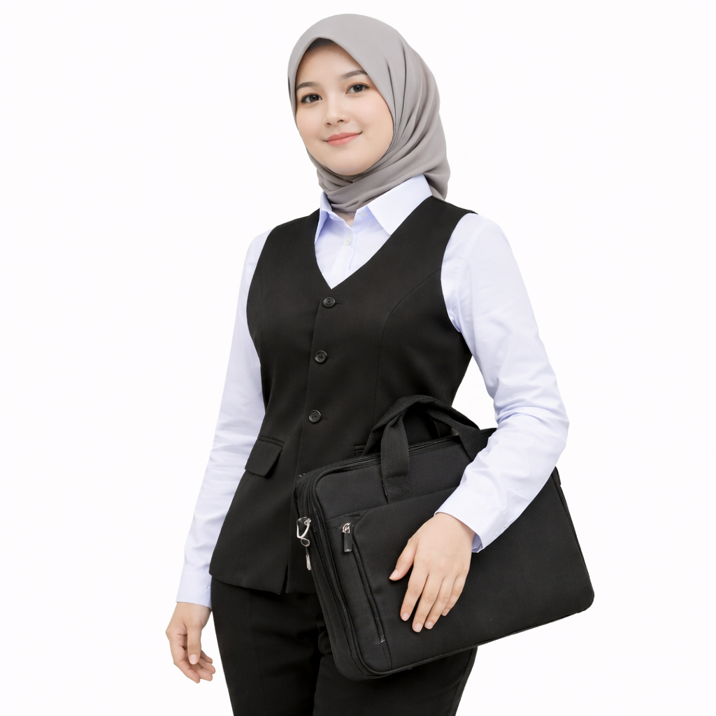 Vest Formal Wanita Polos Slim Fit Bahan Gabardine | Rompi Kerja Kantoran Tanpa Lengan Korean Style Pendek | Vest Wanita Kantor Rapi Elegan Dewasa Size Standar Jumbo Cocok untuk Kerja, Meeting & Acara Formal