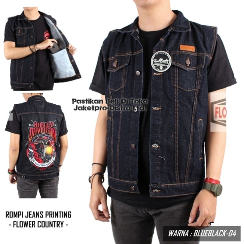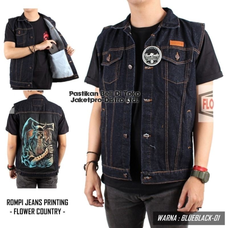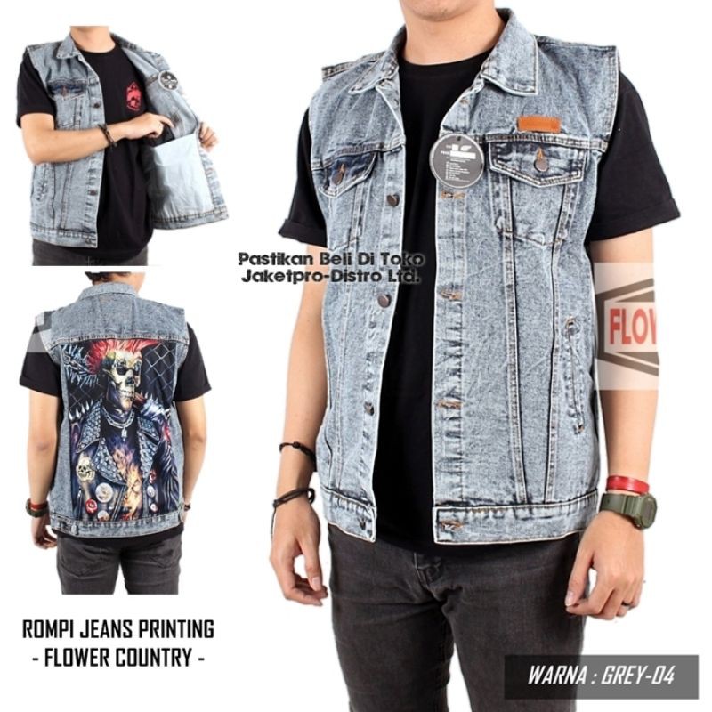 Rompi Jeans Denim Printing Skull Gambar Tengkorak - Rompi Denim Pria