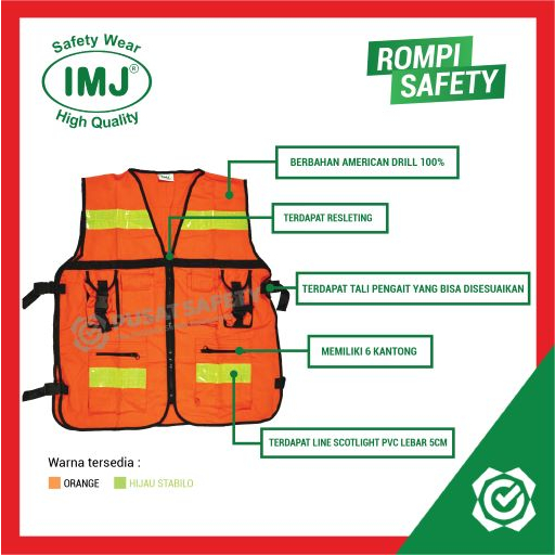 Rompi Safety Proyek Kerja Lapangan 6 Kantong IMJ