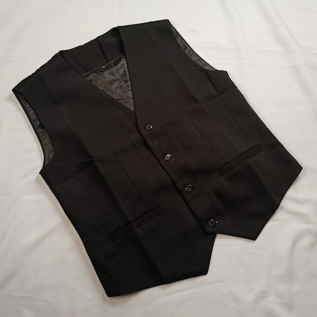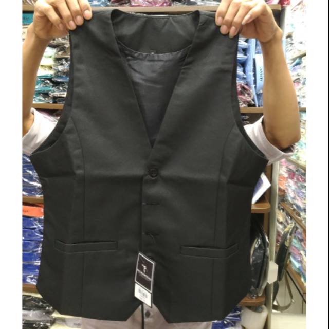 Rompi Pria Vest Hitam Dalaman Jas Slimfit Bahan Semi Wool D'Manteau